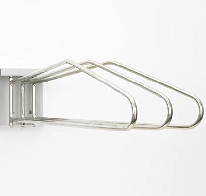 The wall mounted racks are available with one, two, three, and five stainless steel hangers. Another model with hooks is available for fixing on all wall racks. The wall brackets can be right or left sided for optimum use of space.